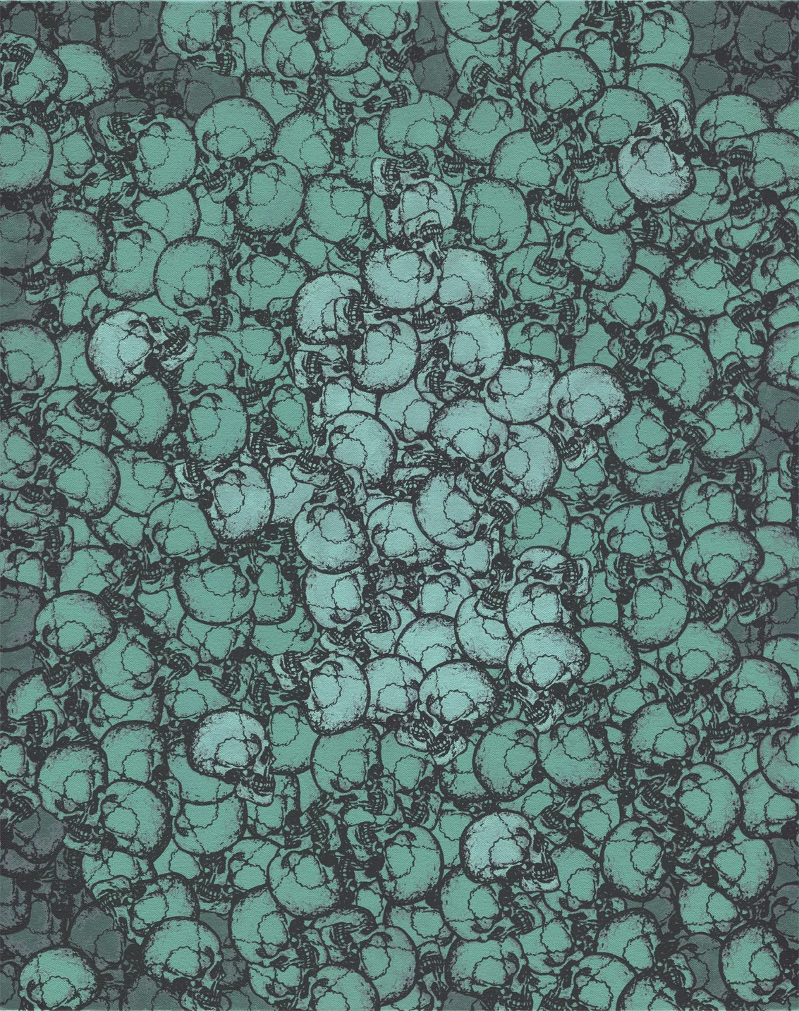 A series of acrylic works based on hand-drawn inky illustrations of skulls that have been digitized, painted, and then screen printed onto canvas mounted on 20 x 16 inch hardwood panels.